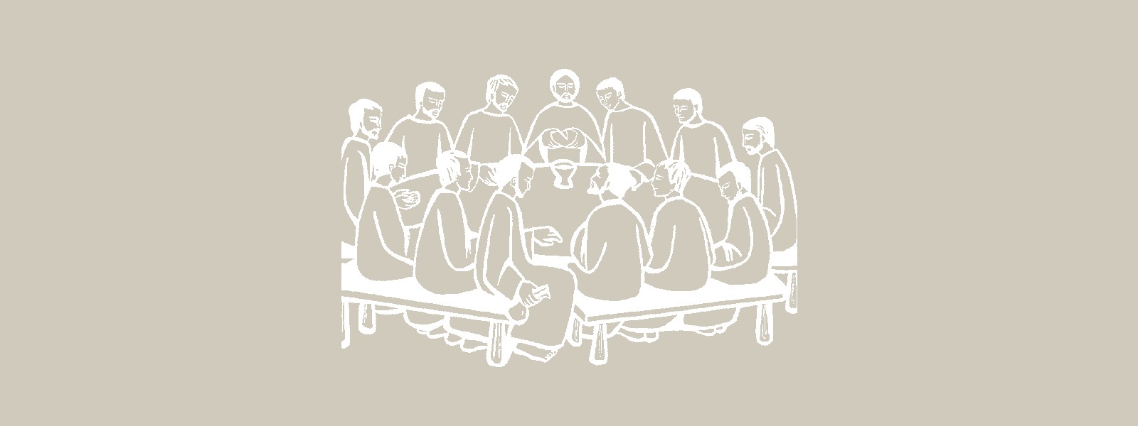Jésus prend son dernier repas avec les douze Apôtres dans la salle dite du « Cénacle ». Saint Paul et les évangélistes Marc, Luc et Matthieu rapportent les récits de la Cène au cours de laquelle, en prenant le pain et le vin, le Christ rend grâce et offre son Corps et son Sang pour le salut des hommes.