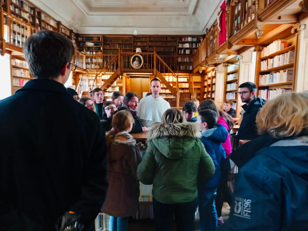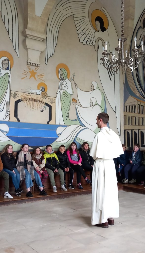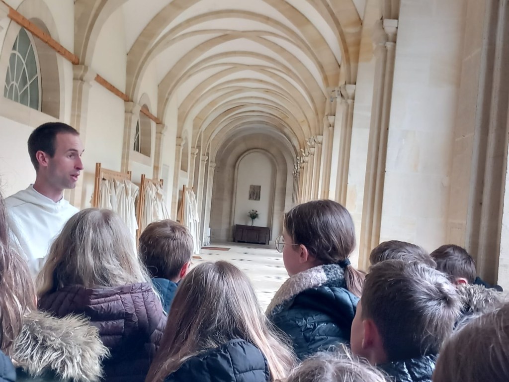 Visite de l abbaye avec frère Gabriel. Nous entrons par le cloître.