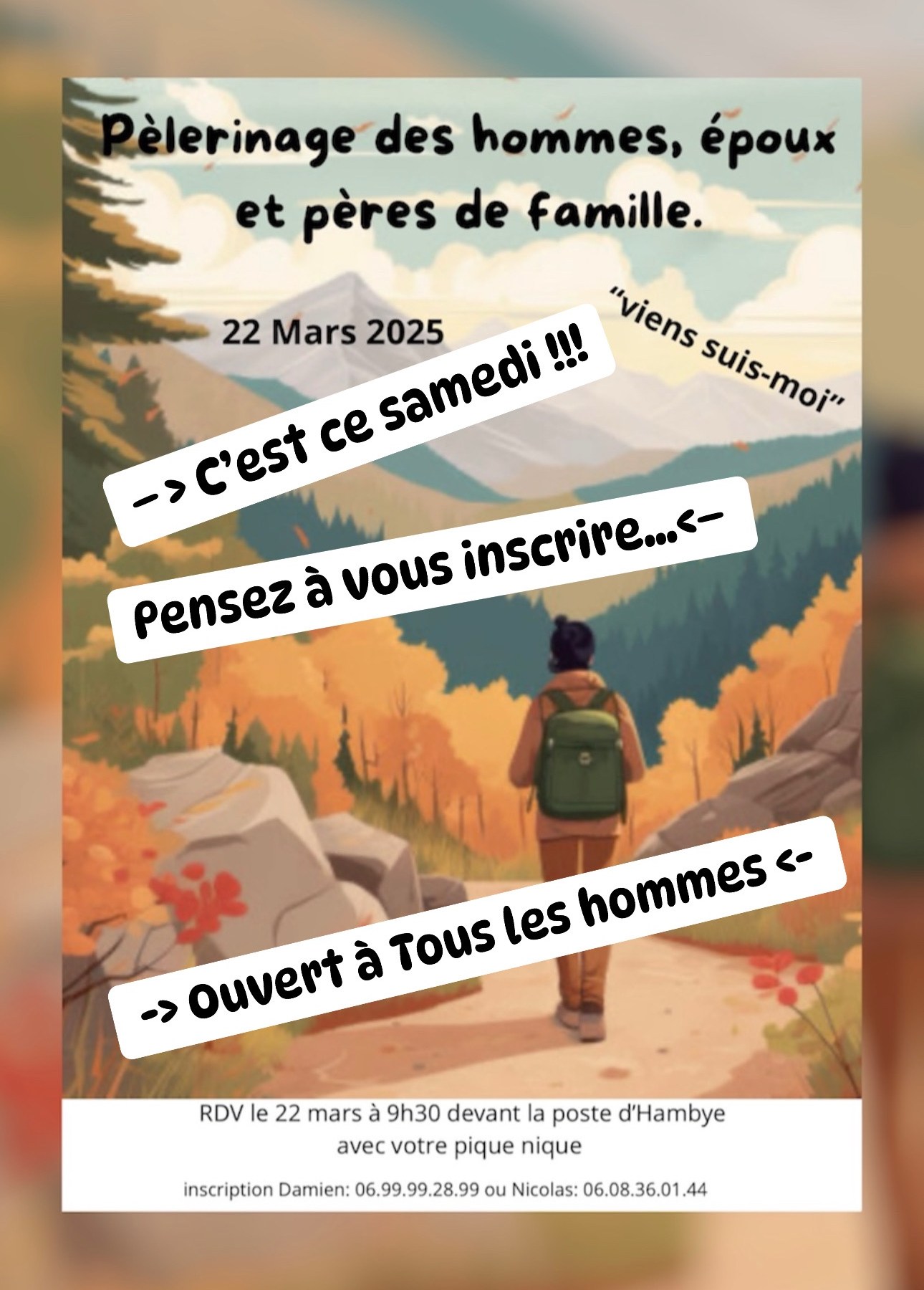 RDV le 22 mars à 9h30 devant la poste d’Hambye avec votre pique nique