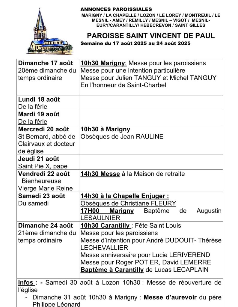 <Erratum> Annonces Semaine du 17 au 24 août 2025