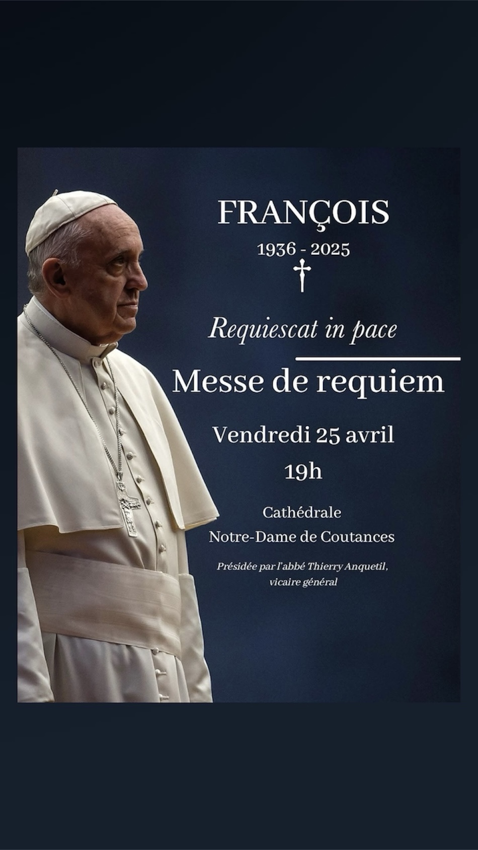 Messe à l’issue de laquelle une dizaine de chapelet sera dite pour le repos de l’âme du Pape François.